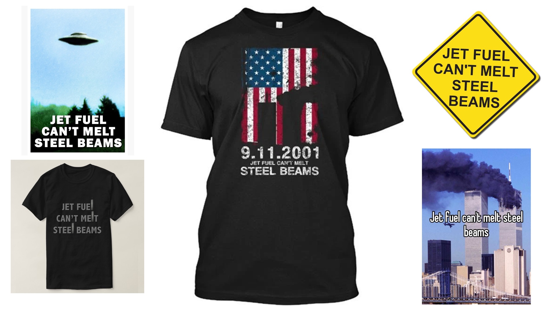 “Jet Fuel Can't Melt Steel Beams” (en français : « le kérosène ne peut pas faire fondre des poutres en acier ») est une affirmation faisant référence aux attentats du 11-Septembre. Elle a été souvent utilisée par les conspirationnistes qui pensent que les attentats de 2001 ont été fomentés de l'intérieur de l'appareil d'État américain. Leur argument est que les poutres en acier qui constituaient l'armature des tours jumelles du World Trade Center n'ont pas pu fondre en raison de la chaleur provoquée par l'incendie, autrement dit que les tours ont fait l'objet d'une « démolition contrôlée ». En réalité, la chaleur était suffisante pour fragiliser la structure en acier au point que les tours s'écroulent sur elles-mêmes (ou quasiment).
