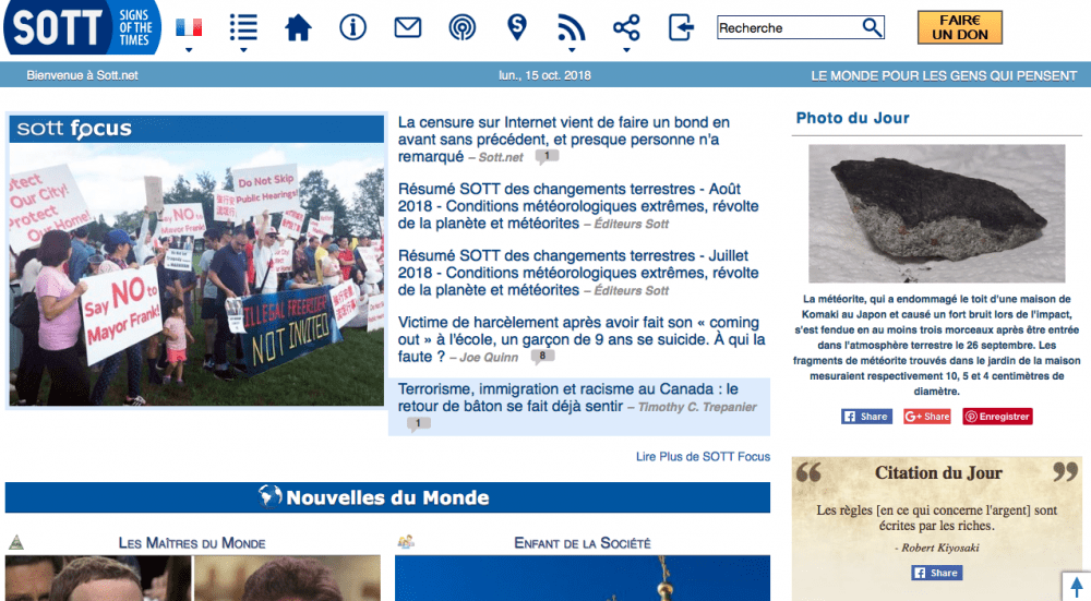 Sott.net est actif en langue française depuis 2007. Selon Le Monde, le site « héberge des théories conspirationnistes. Il a notamment relayé une prétendue intervention d'une princesse saoudienne au Monde qui était inventée de toutes pièces ».