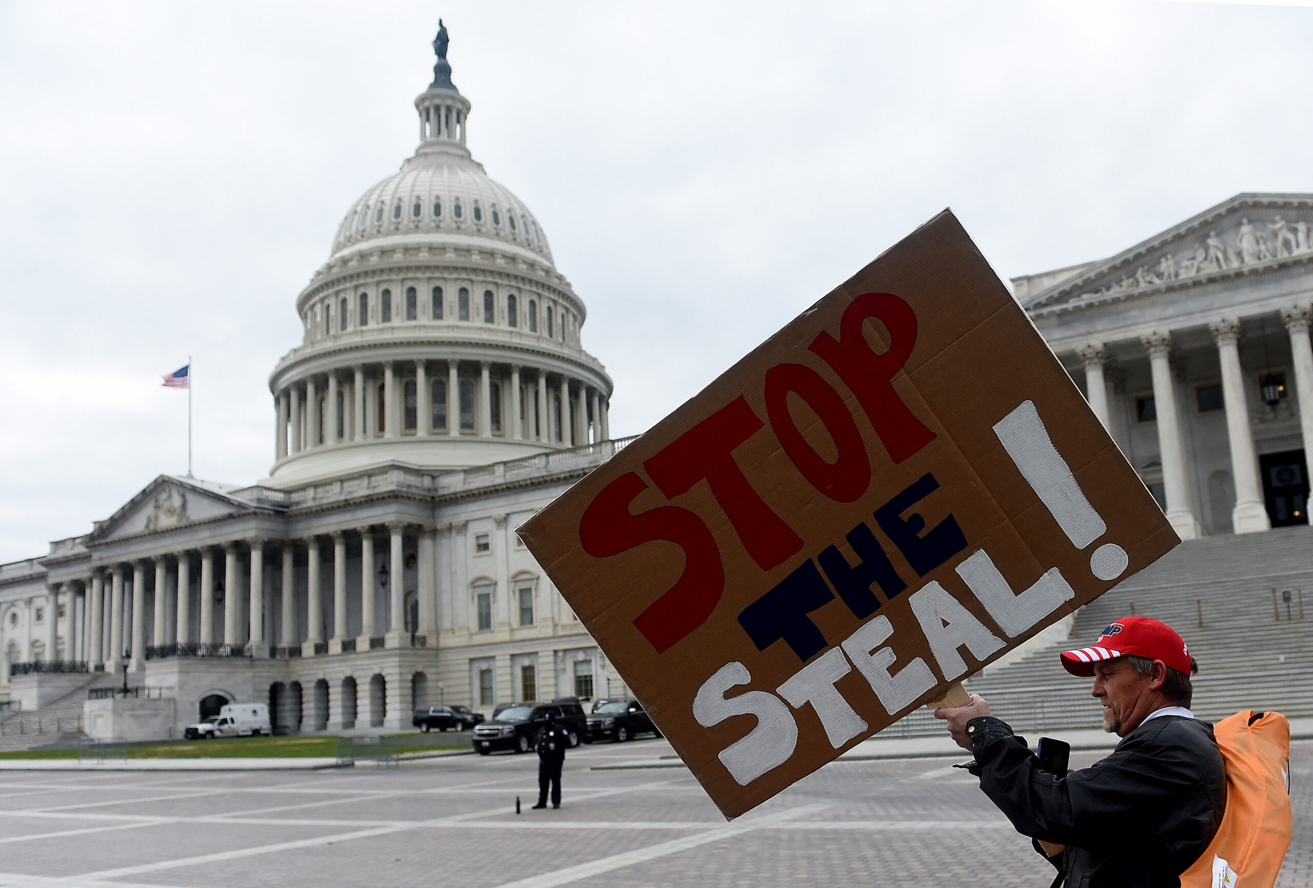 Ce slogan complotiste postule, sans aucune preuve matérielle, que la victoire de Joe Biden est le fruit d'une vaste fraude électorale organisée par le Parti démocrate, avec la complicité de puissances étrangères, de « l'État profond » et même du FBI, pour voler la victoire à Donald Trump.