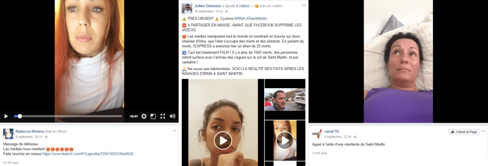 « Vous savez ce qu’il se passe à Saint-Martin ? C’est très très grave. » Le visage sombre, Rebecca Riviera raconte à ses amis Facebook ce qu’elle a lu et entendu sur la situation sur l’île, dévastée par l’ouragan Irma le 6 septembre. Avec ses mots et quelques extraits audio de témoignages d’habitants sur l’île, cette Provençale tire la sonnette d’alarme. Sa vidéo de près de vingt minutes, publiée samedi 9 septembre, a été visionnée plus de 4 millions de fois et partagée plus de 120 000 fois en quatre jours depuis son seul profil Facebook.