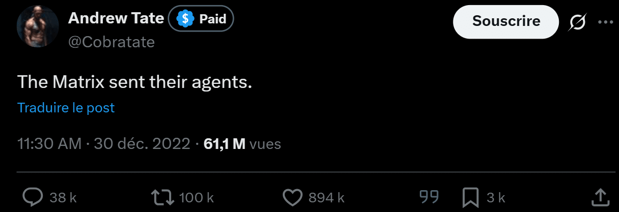 Ce discours fait mouche auprès de sa base. Comme le souligne le Guardian, Andrew Tate a multiplié les propos « prophétiques » expliquant qu'il allait être censuré et persécuté pour avoir contesté la « vérité officielle », c'est-à-dire celle de « la Matrice ». Pour ses plus fervents adeptes, son arrestation n'est donc pas une source d'inquiétude, mais renforce plutôt la crédibilité de l'influenceur.